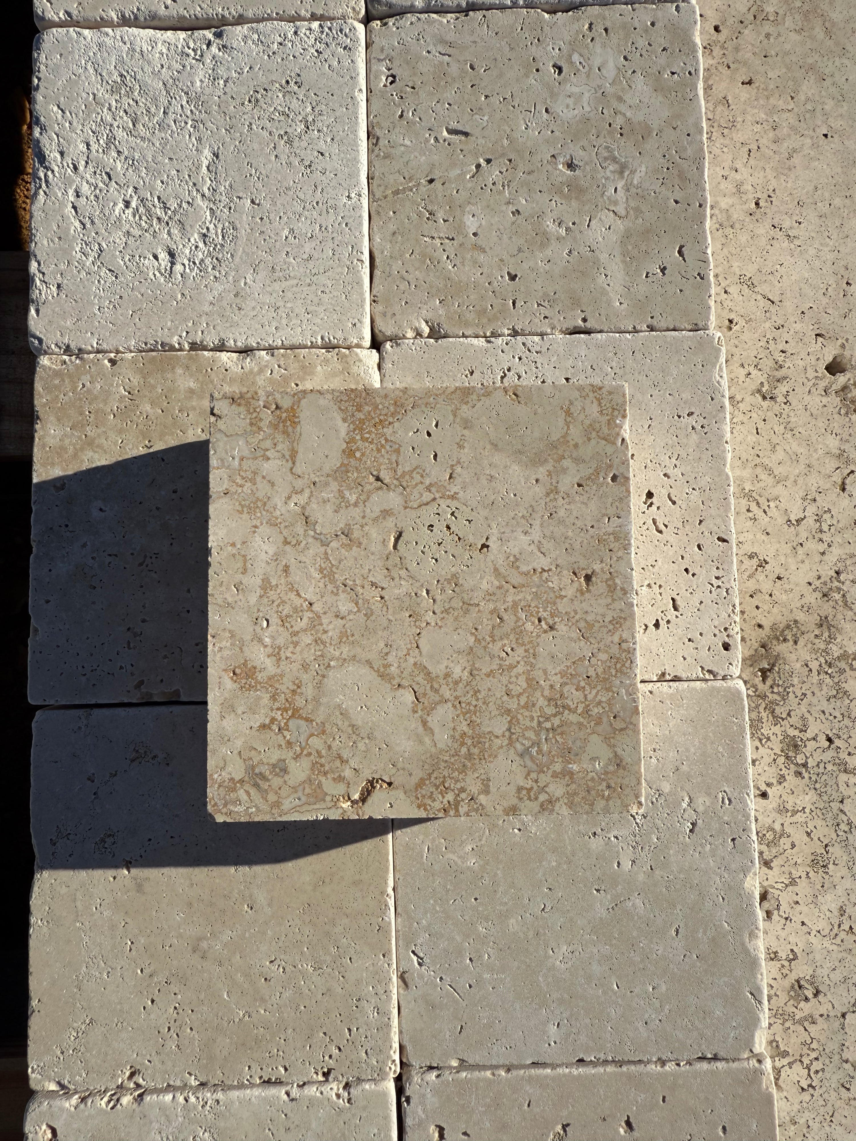 Pavés Travertin 12 × 12 × 5 cm – vieilli