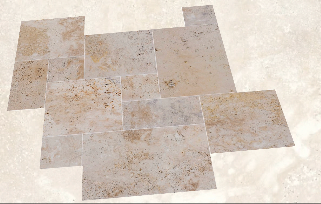Mots-clés : travertin light mix opus, pierre claire, 1.2 cm.