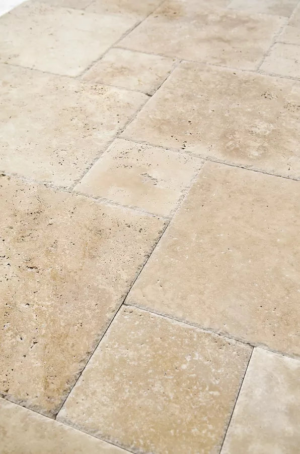 Travertin martelé effet vieilli – Light Mix 1er choix – Opus Romain 1,2 cm