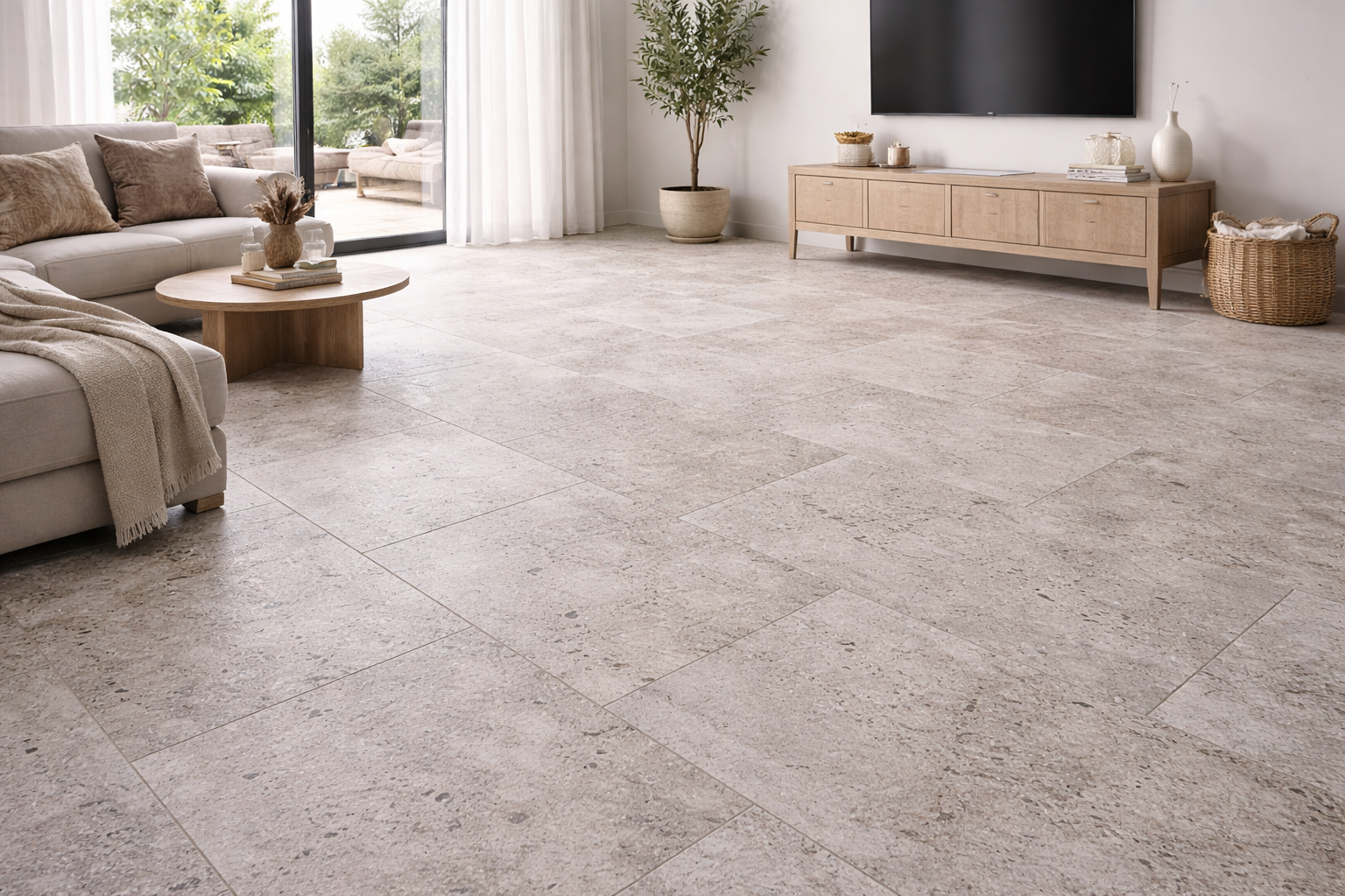 Dalle en travertin rustique au rendu authentique, avec variations naturelles, aspérités et cavités propres à la pierre. Idéal pour terrasses, plages de piscine et sols à l’esprit méditerranéen.