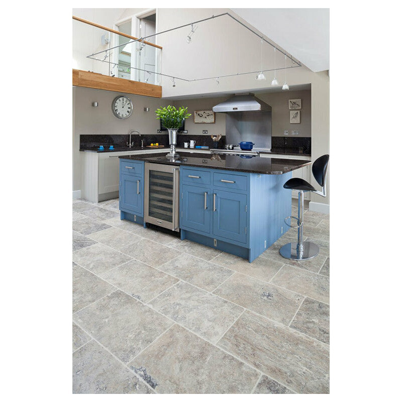 Le Travertin Silver se distingue par ses nuances grises et argentées, parfois veinées de légers contrastes fumés. Un style minéral contemporain, très apprécié pour les projets haut de gamme.